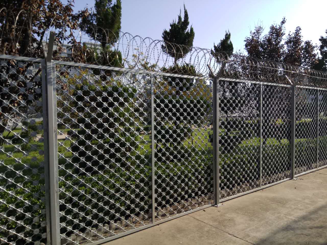 監(jiān)獄鋼網(wǎng)墻所采用的生產(chǎn)FHB/Q1268焊接標(biāo)準(zhǔn)生產(chǎn),以低碳鋼絲,鋁鎂合金編織焊接生產(chǎn), 用于公路,鐵路,飛機(jī)場,住宅小區(qū),港口碼頭,花園,飼養(yǎng),畜牧等的圍欄防護(hù)。整體浸塑處理,防盜螺栓連接。